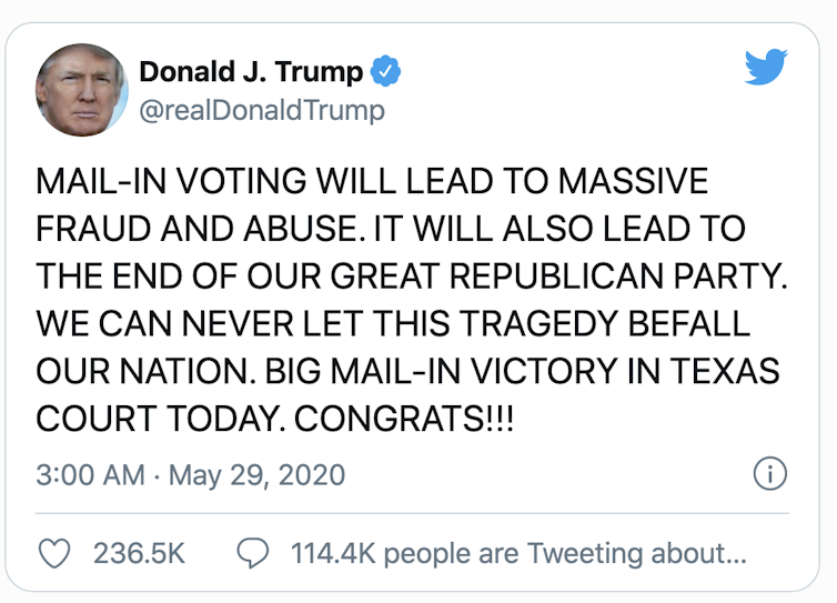 El presidente de Estados Unidos, Donald Trump, lo ha repetido una y otra vez: permitir el voto por correo alentaría el fraude y beneficiaría al candidato demócrata, Joe Biden.